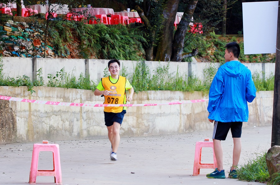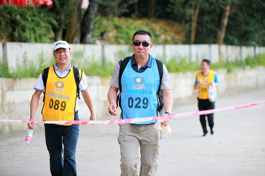 9月23日15:30,馬巒山腳下,秋日溫和,綠樹成蔭。六輛中巴車依次到達(dá),集團(tuán)俞磊副總、張瑞理副總帶領(lǐng)的總部員工和特發(fā)物業(yè)員工匯合,經(jīng)過短暫的休整和準(zhǔn)備,大家被隨機(jī)分成了紅、黃、藍(lán)、綠四只參賽隊(duì)伍。隨著一聲槍響,徒步健行比賽活動(dòng)開始,在一片歡快的笑聲中,隊(duì)員們邁著輕快的步伐,沿著徒步線路,一路向山上的終點(diǎn)進(jìn)發(fā)。本次徒步線路約7.4公里,個(gè)人成績(jī)?nèi)∧凶、女子前六名,團(tuán)隊(duì)成績(jī)?nèi)£?duì)內(nèi)前十名到達(dá)終點(diǎn)的隊(duì)員登山用時(shí)總和進(jìn)行排名。