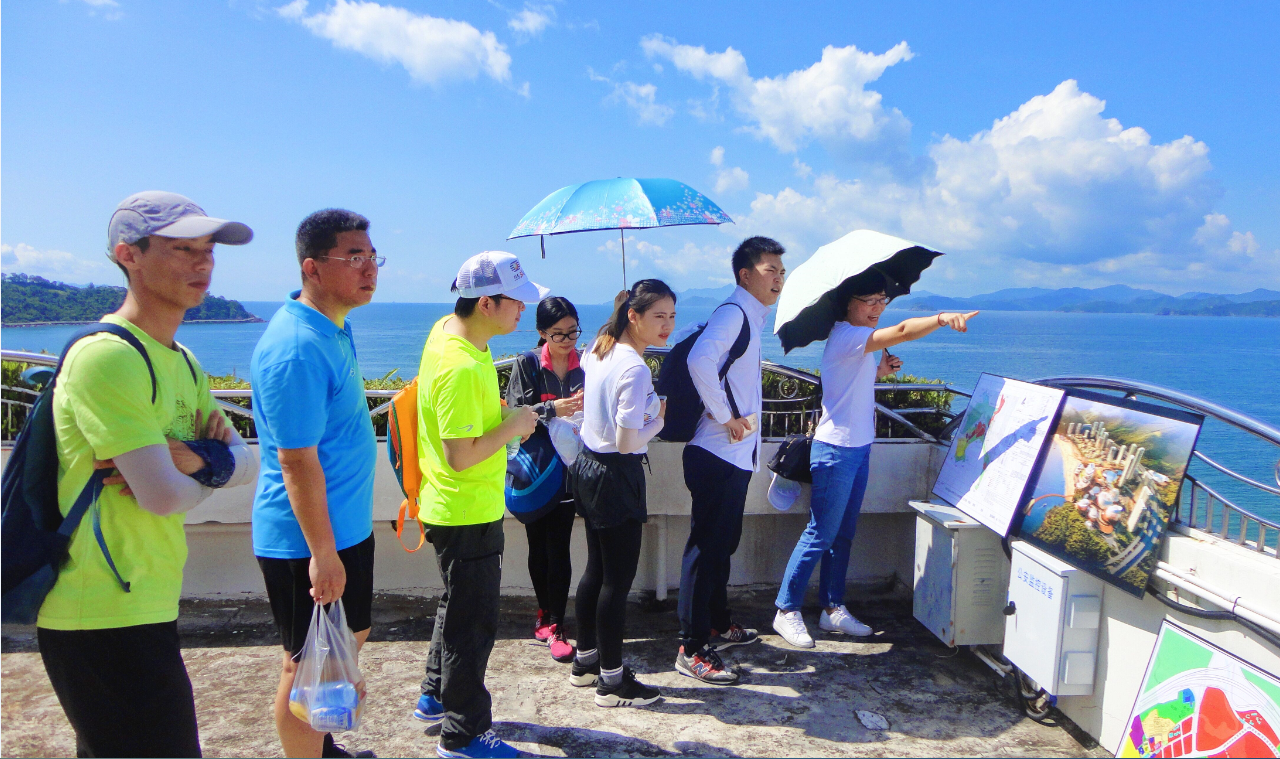 聽取完介紹后,大家從小梅沙大酒店出發(fā),頭頂烈日、腳踩臺階,沿疊翠湖水庫線路徒步前往馬巒山進行戶外活動,在小梅沙投資沿路講解下,實地直觀感受小梅沙二次開發(fā)項目。沿途自然風光得天獨厚,景色秀麗,在向目的地洞背村進軍過程中,大家不僅可以遠眺大海的遼闊與壯美,還可盡情享受大山的幽曠與雅趣,通過親近自然,遠離塵囂,釋放工作中的壓力,找尋生命的本真。