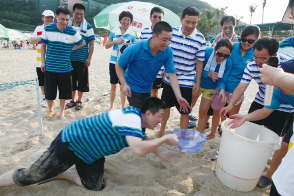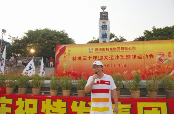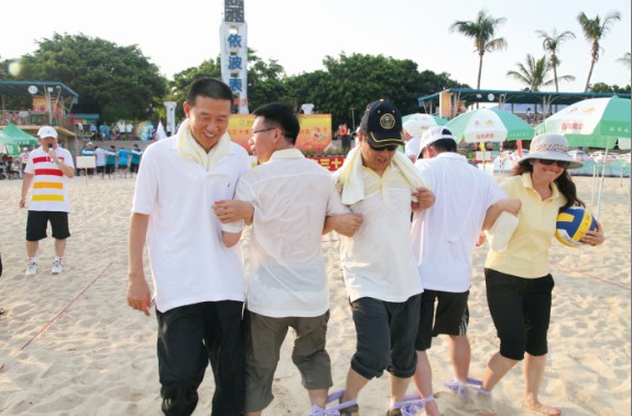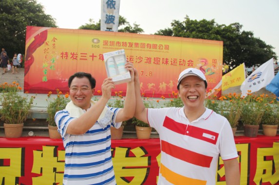 7月8日,特發(fā)小梅沙旅游中心裝扮一新,司旗彩旗迎風飄揚,五彩鮮花競相綻放,“熱烈慶祝特發(fā)集團成立30周年”等祝福語在小梅沙酒店門口的LED大屏幕上不停滾動,到處彌漫著祥和歡樂的氣氛。下午4:30,特發(fā)30年迎大運沙灘趣味運動會在美麗的小梅沙海灘拉開帷幕。集團總部全體員工、全資控股企業(yè)班子成員及財務負責人、參股企業(yè)特發(fā)方產(chǎn)權代表參加運動會。運動會安排了沙灘排球、步調(diào)一致和障礙接力3個項目;根據(jù)人數(shù)對等的原則,運動員分成4支參賽隊伍,即:由集團公司領導和部門領導組成的公司一隊;由集團公司各部門員工組成的公司二隊;由特發(fā)信息、小梅沙旅游中心、特發(fā)物業(yè)3家企業(yè)組成的企業(yè)一隊;由特力集團、香蜜湖度假村、黎明集團、高爾夫、華麗公司、華明公司組成的企業(yè)二隊。