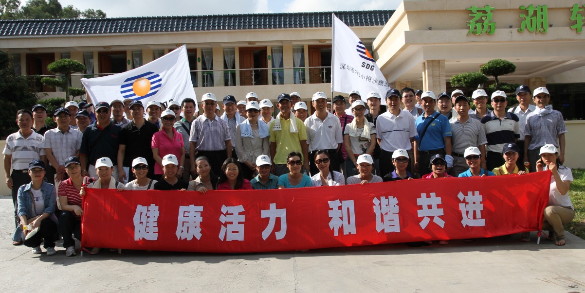 下午4點,集團總部全體員工和小梅沙旅游中心中層以上管理人員分別到達西麗果場,大家高舉著特發(fā)集團司旗和“健康活力,和諧共進”的標語集體合影,小梅沙旅游中心朱振聲總經理簡短講話后,活動開始。大家向著果園進發(fā),成熟的荔枝早就掛滿枝頭,品嘗佳果,大家心情像荔枝一樣甜蜜。從果園出來后,大家來到西麗湖畔,開展團隊游戲。集團總部和小梅沙旅游中心分別組隊參與了3個團隊合作的游戲項目。雖然只是簡單的游戲,但大家都十分認真,分發(fā)揚團隊合作精神,每個游戲都積極討論致勝之術,全情投入。集團張俊林董事長全程都和大家一起參與荔枝采摘活動和游戲項目。在歡聲笑語中,大家一掃平時工作中緊張的情緒,放飛心情,享受著難得的輕松與閑適。最后大家手挽手肩并肩高歌一曲《真心英雄》,圓滿結束了這次戶外活動。